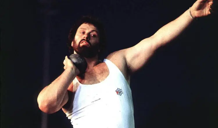 In all, he improved the British record from 19.56m to 21.68m – holding the mark from 1972 to 2003 – and competed for Britain a remarkable 67 times. At the height of his fame the shot circle at Crystal Palace was moved to the centre of the home straight so that he would be centre stage. A bona fide athletics icon, he would often start competitions with his tracksuit on and then take it off in the fourth or fifth round when "he meant business".