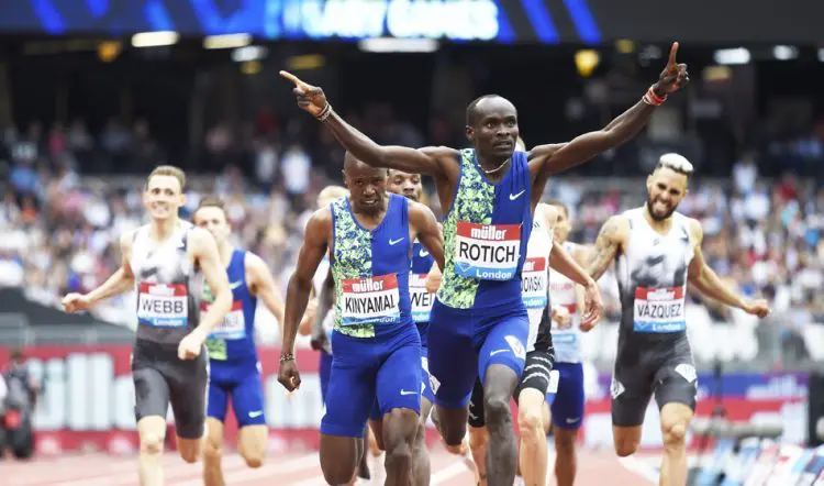 The men’s 800m also saw several brilliant British performances behind winner Ferguson Rotich – the Kenyan winning in 1:43.14 (pictured below). These were led by Jamie Webb, who smashed his 1:45.73 to clock 1:44.52 for 10th on the UK all-time rankings. “I don’t care who I’ve passed on the all-time lists,” he said. “All that matters is that I beat my club record (at Liverpool Harriers) held by Curtis Robb!”