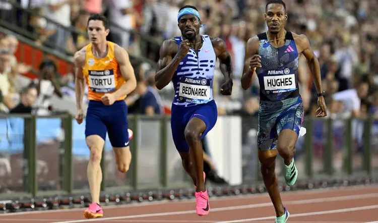 200 (-0.1): 1 Kenny Bednarek USA 19.79; 2 Zharnel Hughes GBR 19.82; 3 Andre De Grasse CAN 19.89; 4 Aaron Brown CAN 19.98; 5 Joe Fahnbulleh LBR 20.24; 6 Filippo Tortu ITA 20.30; 7 Kyree King USA 20.52; 8 Reynier Mena CUB 20.93