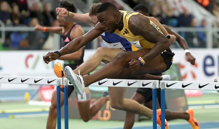 In the 60m hurdles, Holloway equalled his own meeting record with a world-leading 7.32 and was just three hundredths of a second outside the world record.