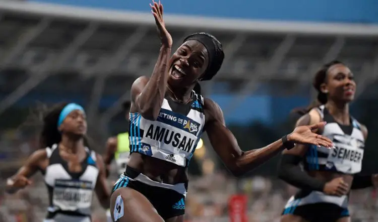 In second, Britain’s Daryll Neita also broke the 11-second barrier with a season’s best of 10.99.