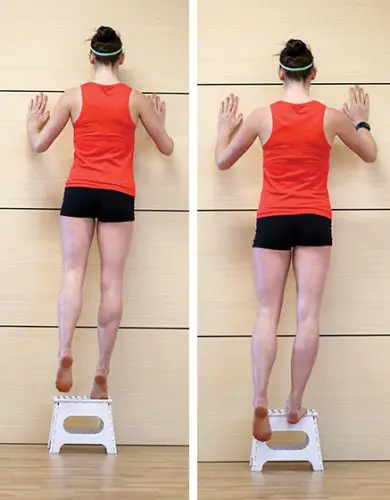 • On one foot, raise hips as high as possible squeezing calf hard in process.