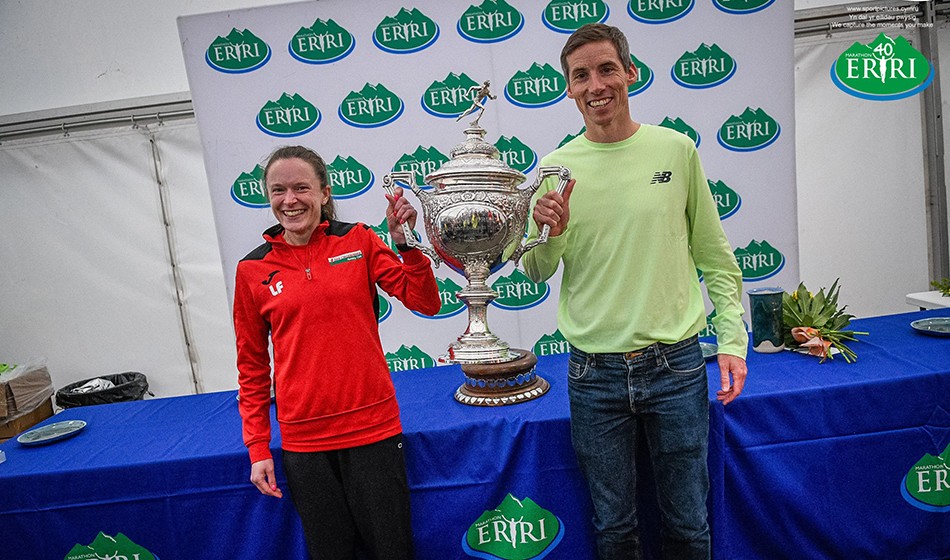 In stunning autumnal weather, Andy Davies and Louise Flynn triumphed at the 40th edition of Marathon Eryri.